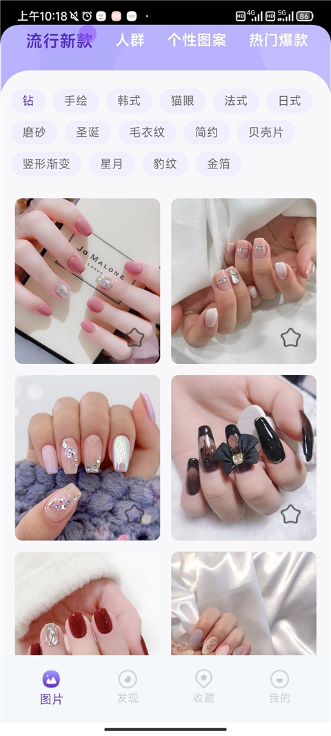 3、在这个平台上,每日都有海量美甲图片供你浏览分享,若遇到喜欢的,可直接收藏至手机。
