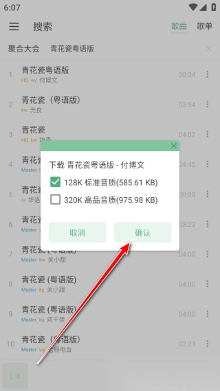 2. 点击“下载”,随后挑选音质(例如128k、320k、FLAC)。