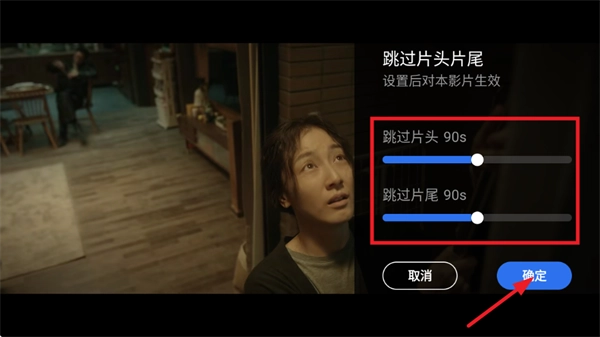 5、按照视频片头片尾的时间来进行相关设置,完成设置后点击确定,就能实现跳过片头片尾的操作。