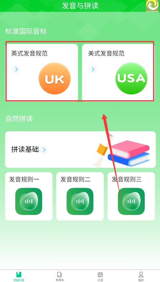1. 开启单词密码App,映入眼帘的是首页,这里包含了从基础发音到高阶词汇的整套教学内容。该软件在教学过程中严格依照国际音标标准。