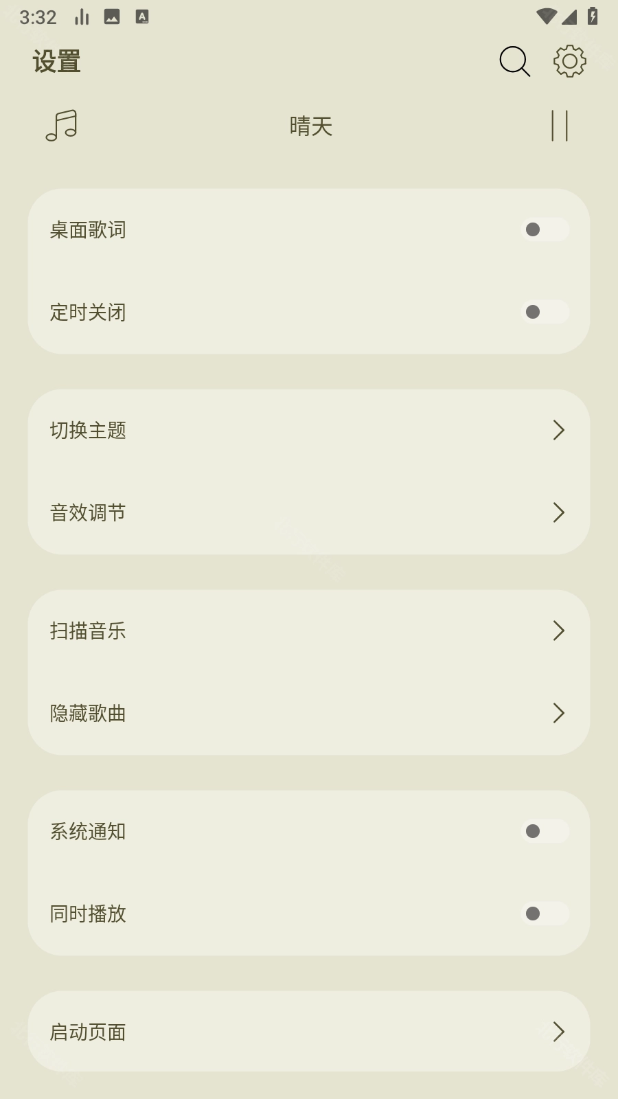 3.在设置界面中选择扫描音乐的选项