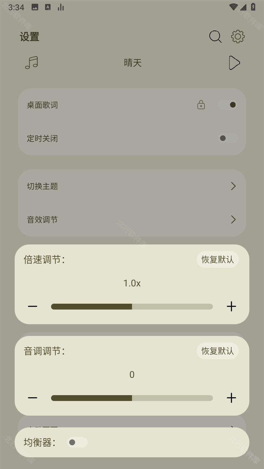 3.在弹出的界面中,点击下方的均衡器开启