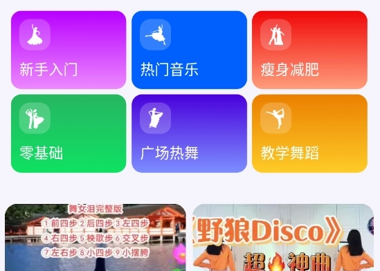2、首页拥有丰富多样的视频,免费提供新手入门教程、热门歌曲相关视频、瘦身减肥视频、教学舞蹈视频以及广场热舞视频等。