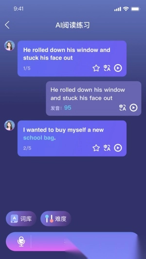 2. 支持AI智能陪练功能,有什么英语上的问题都能问AI助手。